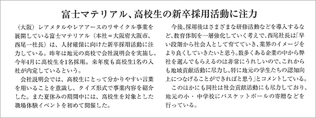 日刊市況通信に高校生の新卒採用活動に関する記事が掲載されました