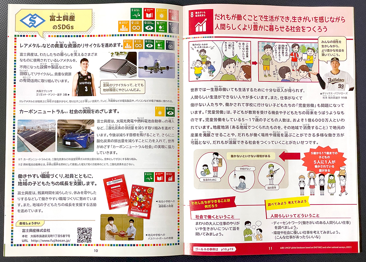 SDGsハンドブックではSDGsの各目標の解説に加えて「SDGsの活動例」として企業の取り組み事例が紹介されており、弊社の取り組みも「富士興産のSDGs」として掲載されております。